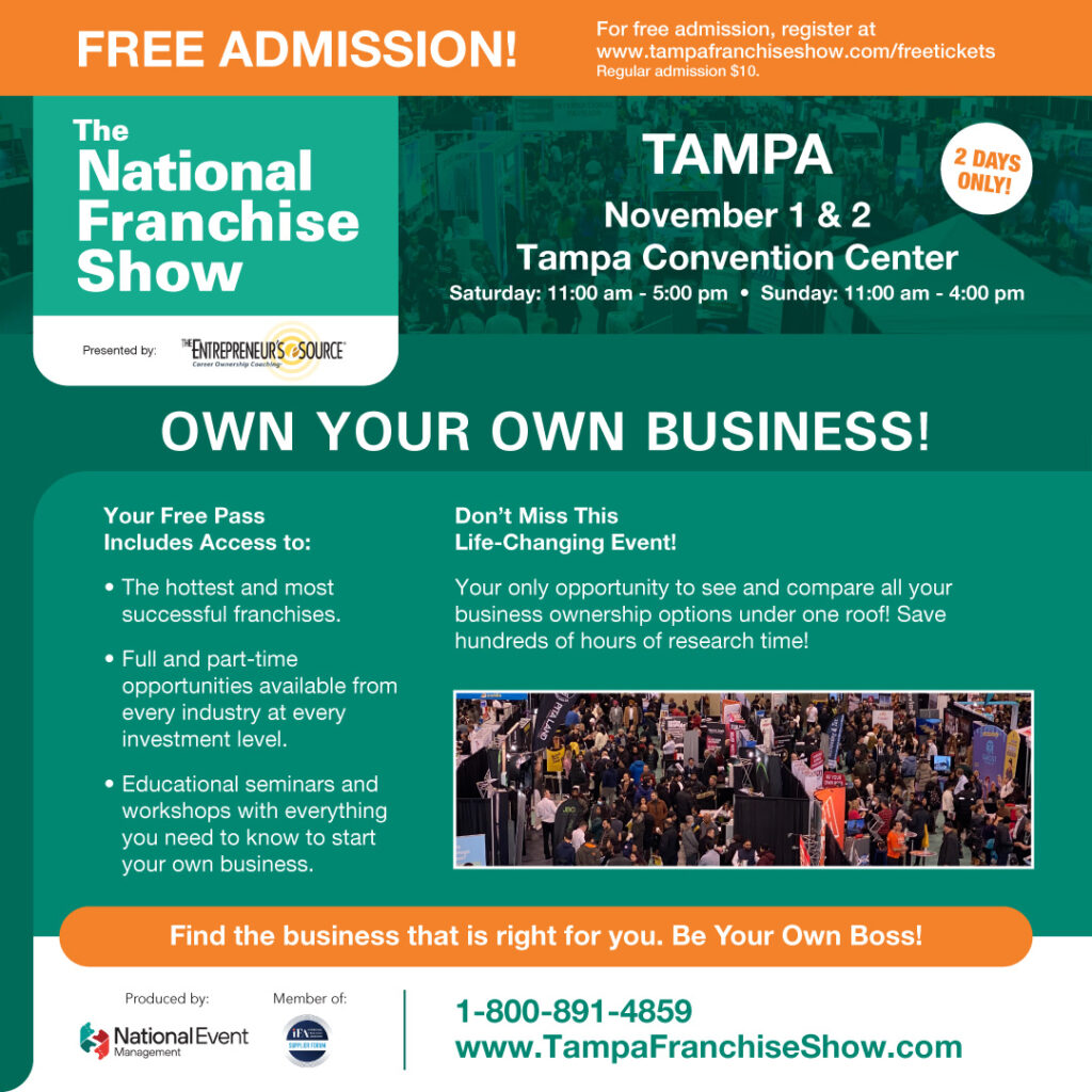 Proven, money making businesses that are now expanding in Tampa are here to meet new potential owners.